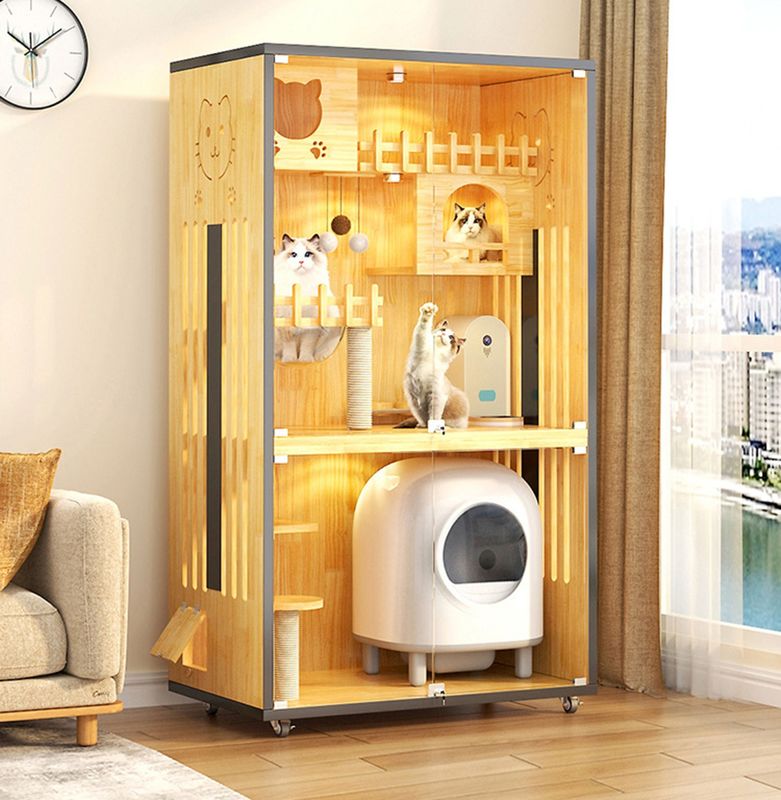 Evcil hayvanlara özel alan: Tırmanma çerçeveli kedi villası, evcil hayvanlara özel alanın bir parçası olarak kullanılabilir, kediler için kendi alanlarını sınırlandırır, böylece kediler kendilerini güvende ve ait hissederler.