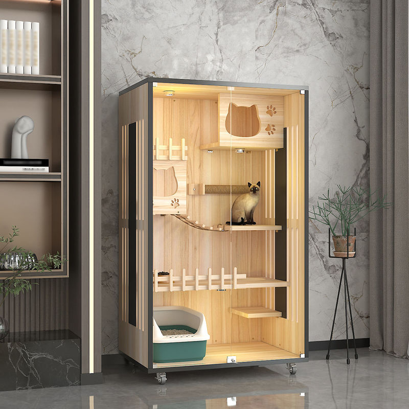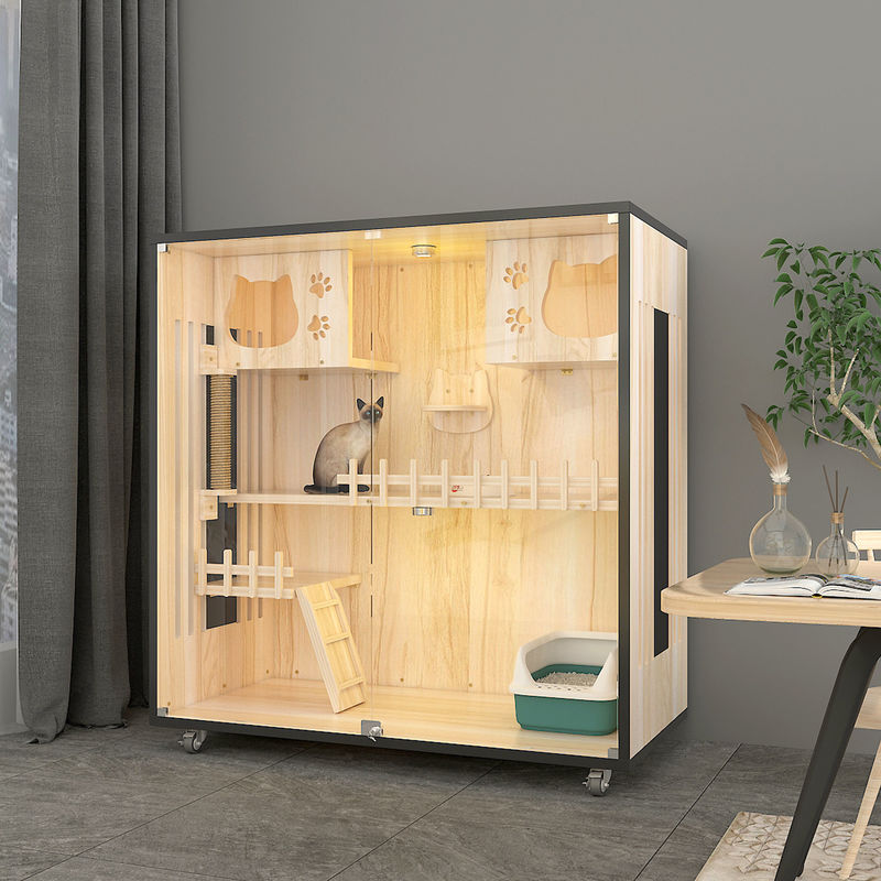Ahşap evcil hayvan dükkanı tekerlekli kedi dolabı kedi villa yavru ev katı ahşap çok katmanlı kedi tırmanma rafı yavru Mobilya
