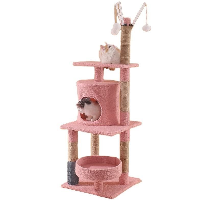 Ana yapı: Tırmanma kulesi ağaçlarının ana yapısı genellikle yüksek kaliteli masif ahşap veya ahşap panellerden yapılır.Bu malzemeler mükemmel dayanıklılık ve dengeye sahiptir ve kedilerin tırmanıp dinlenmesi için sağlam bir platform sağlayabilir.