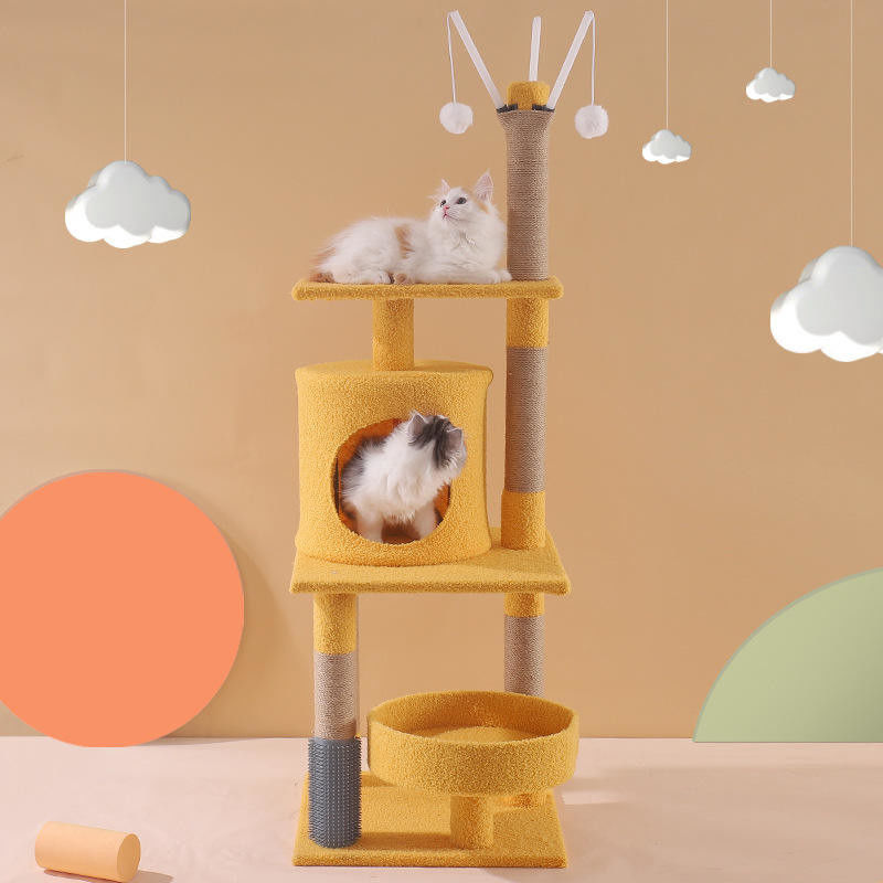 Sıyırıcı direkler: Tırmanma kulesi ağaçları, kedilerin PAWS'lerini ovmaları için ideal bir yer sağlamak ve mobilyaları korurken pençelerini yıpratmalarına yardımcı olmak için genellikle doğal ip veya kumaşa sarılmış sıyırıcı direklerle donatılmıştır.