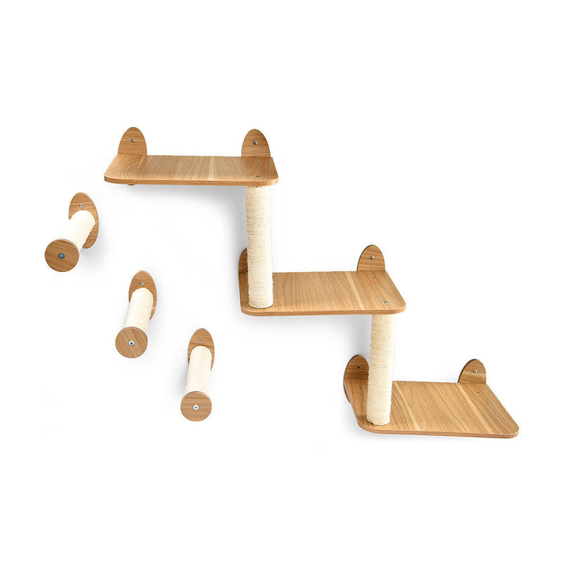 Ana yapı: Duvara monte tırmanma çerçevesinin ana yapısı genellikle yüksek kaliteli masif ahşap veya ahşap panellerden yapılır.Bu malzemeler iyi bir dayanıklılığa ve stabiliteye sahiptir ve kedilerin tırmanması ve dinlenmesi için sağlam bir platform sağlayabilir.