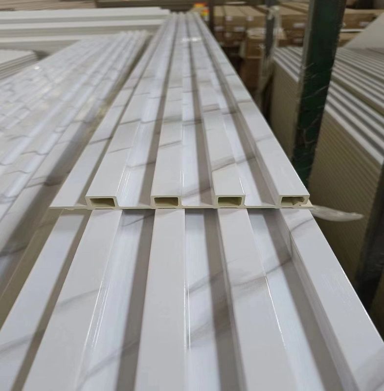 Ahşap rengi ve mermer rengi wpc duvar paneli kaplama wpc yivli duvar paneli