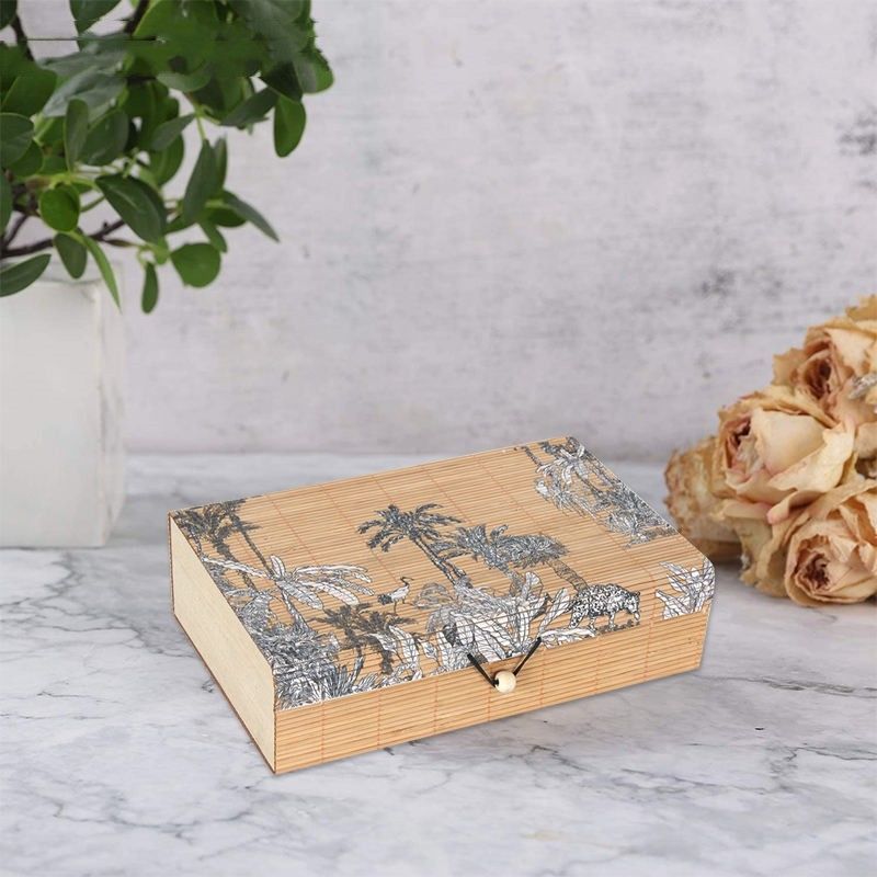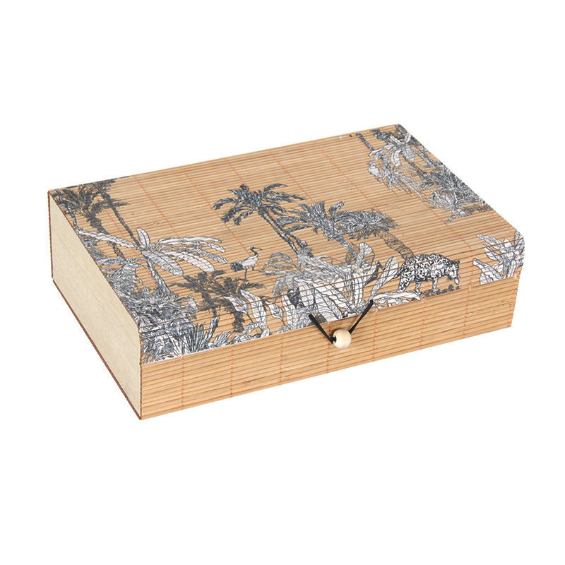 Bambu kapak dekorasyonu: Bambu kapak, kutunun üst kısmında kullanılmış ve görsel olarak daha çekici olması için geleneksel Çin unsurları eklenmiştir.