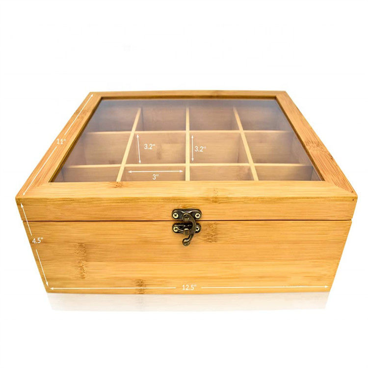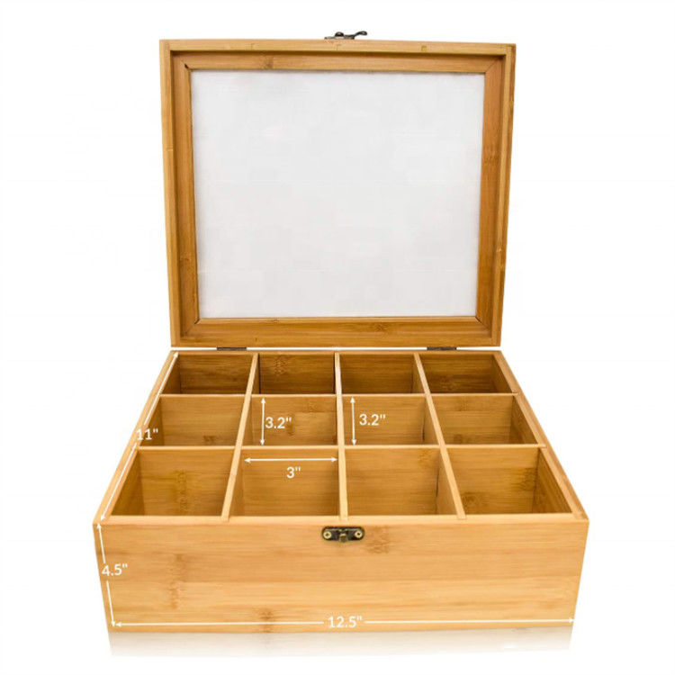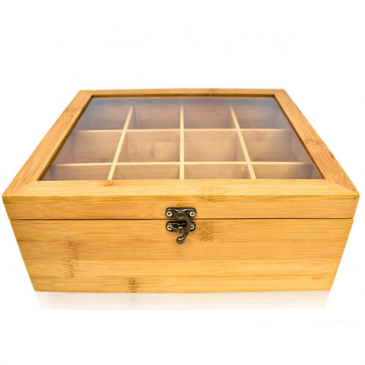 | Ürün adı | 12 bölme doğal depolama çay poşeti özel hediye kutusu katı organizatör şeffaf kapaklı bambu ahşap çay kutusu |