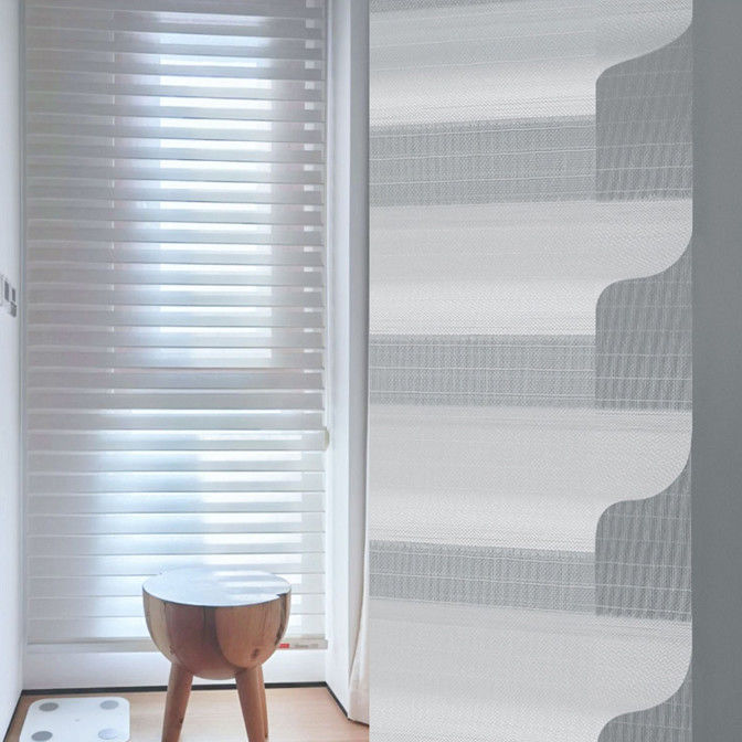Çizgili Panjur Kumaşı: Shangri-La Style Çizgili elektrikli panjurlar, sıcak ve uyumlu bir dekoratif etki sağlamak için genellikle yumuşak kumaşlar veya tekstiller olmak üzere yüksek kaliteli çizgili desenli kumaşlardan yapılır.